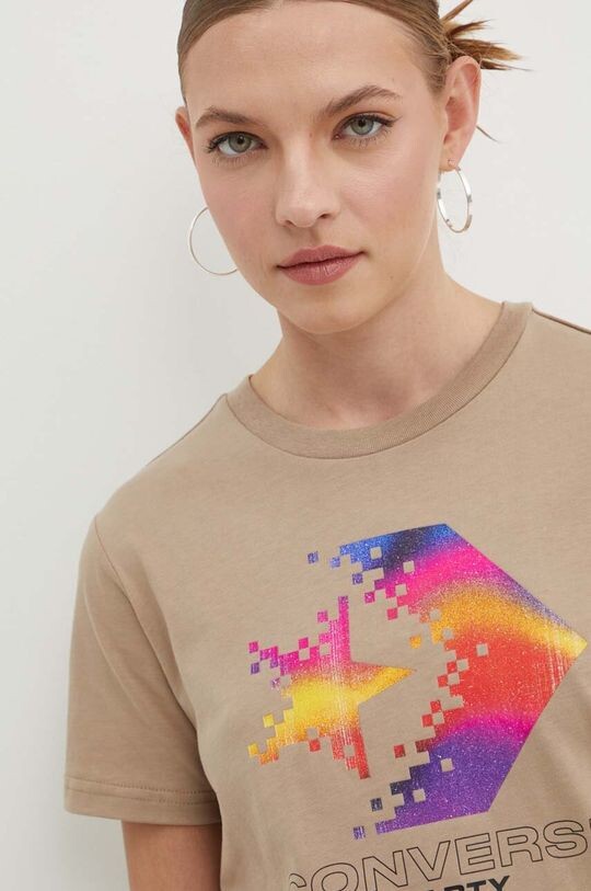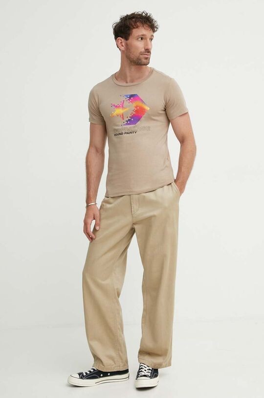 Хлопковая футболка Converse, бежевый