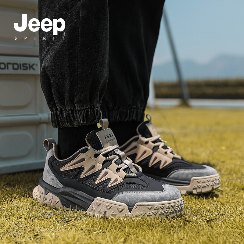 Кроссовки JEEP SPIRIT Skateboarding Shoes Men Low-top Graphite Black, черный 7 247₽