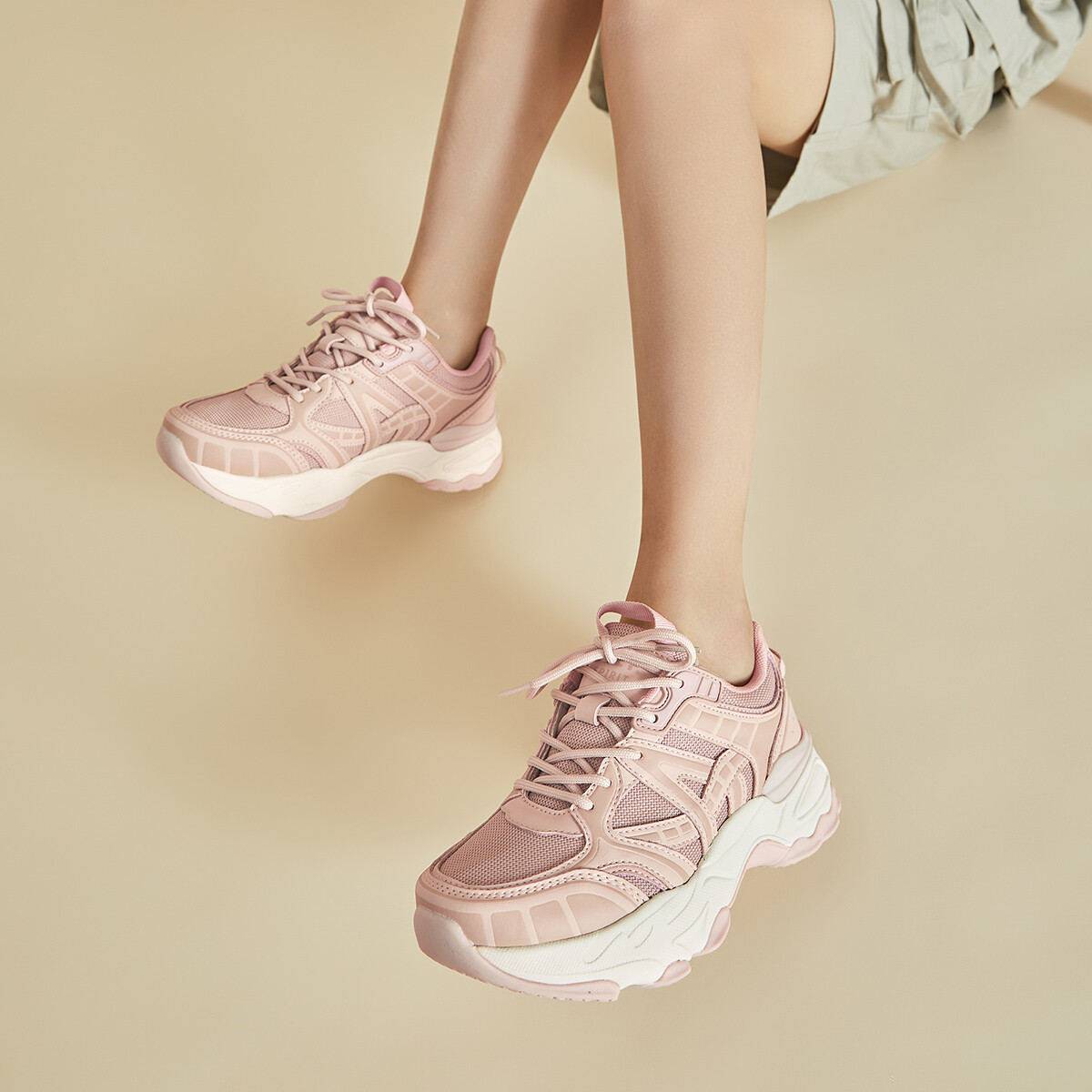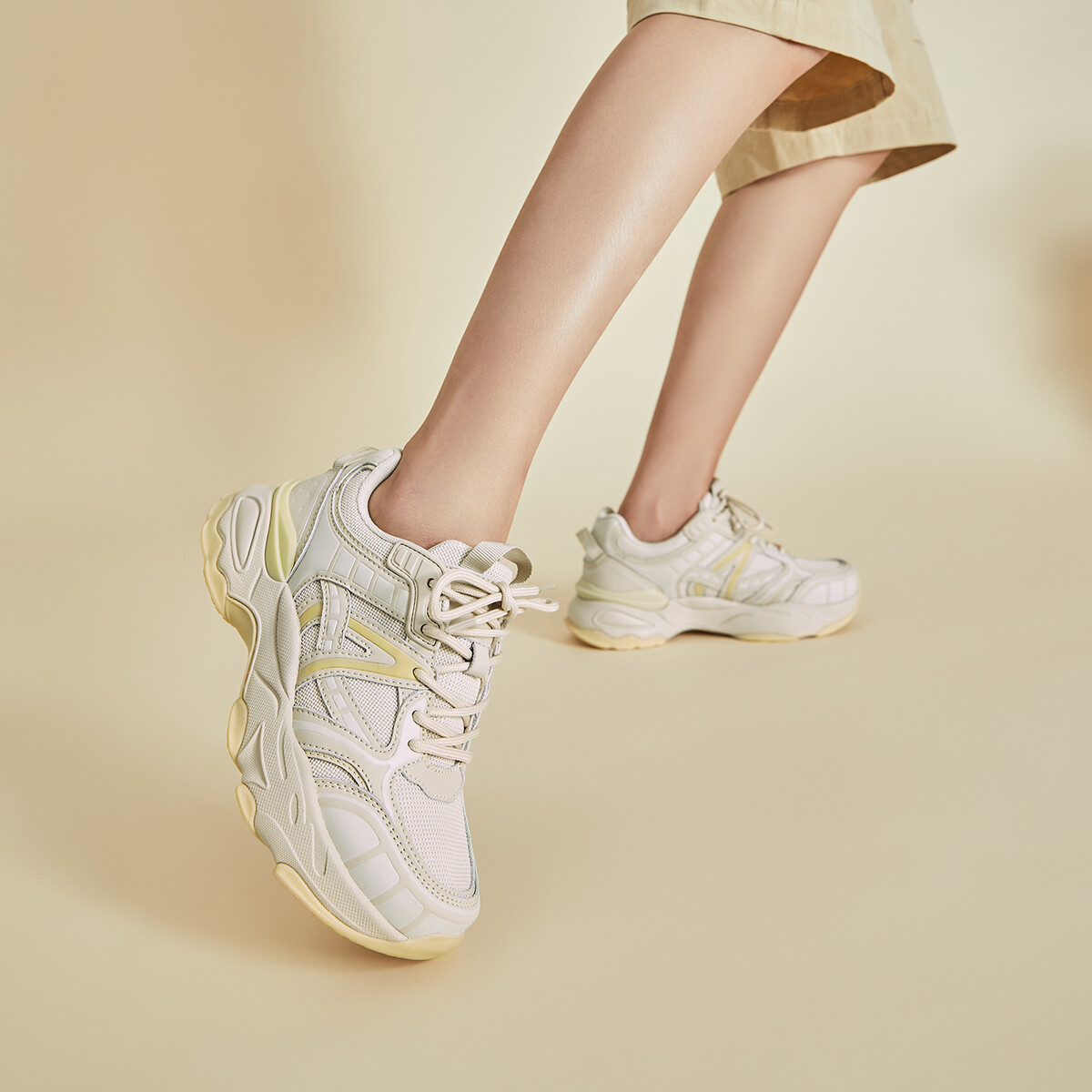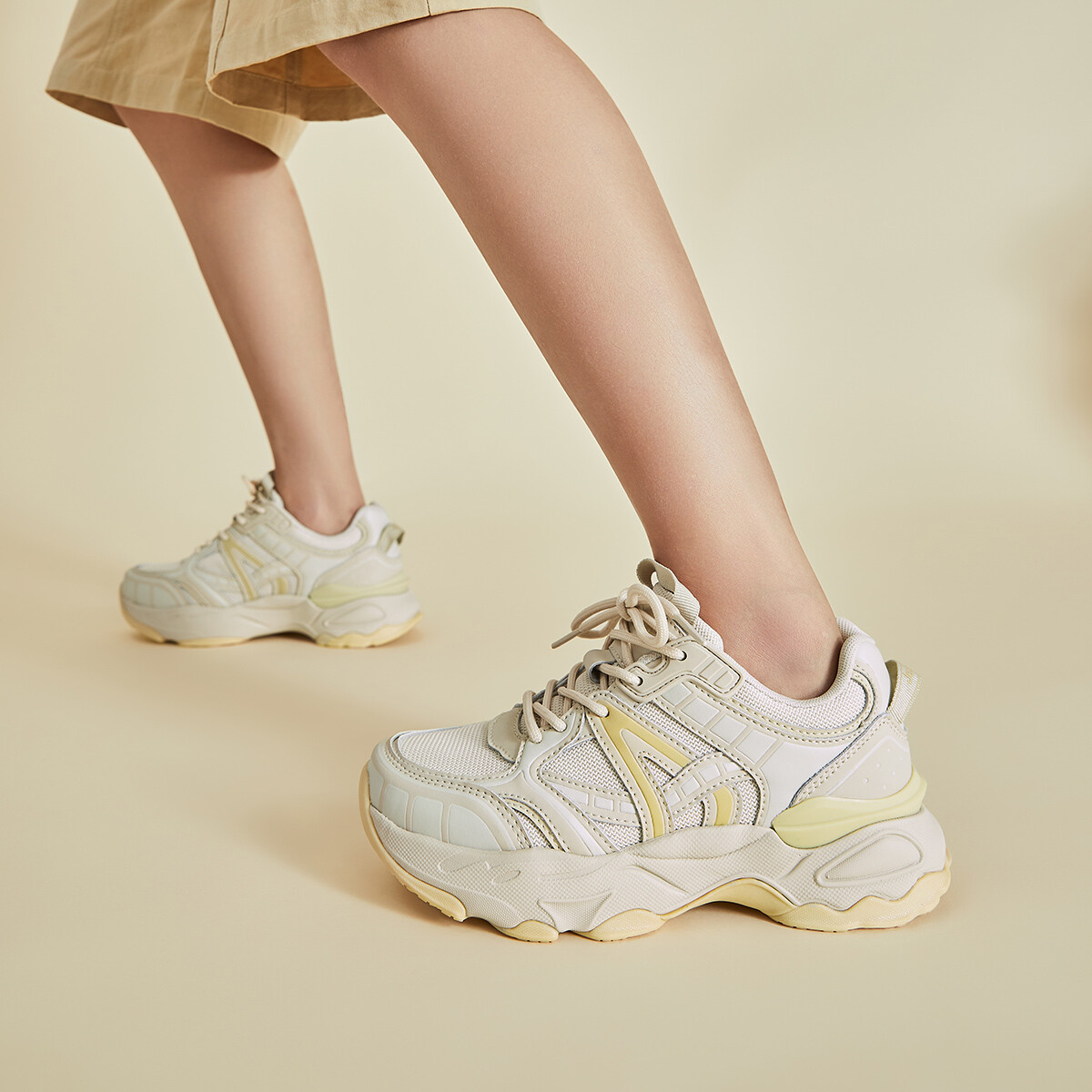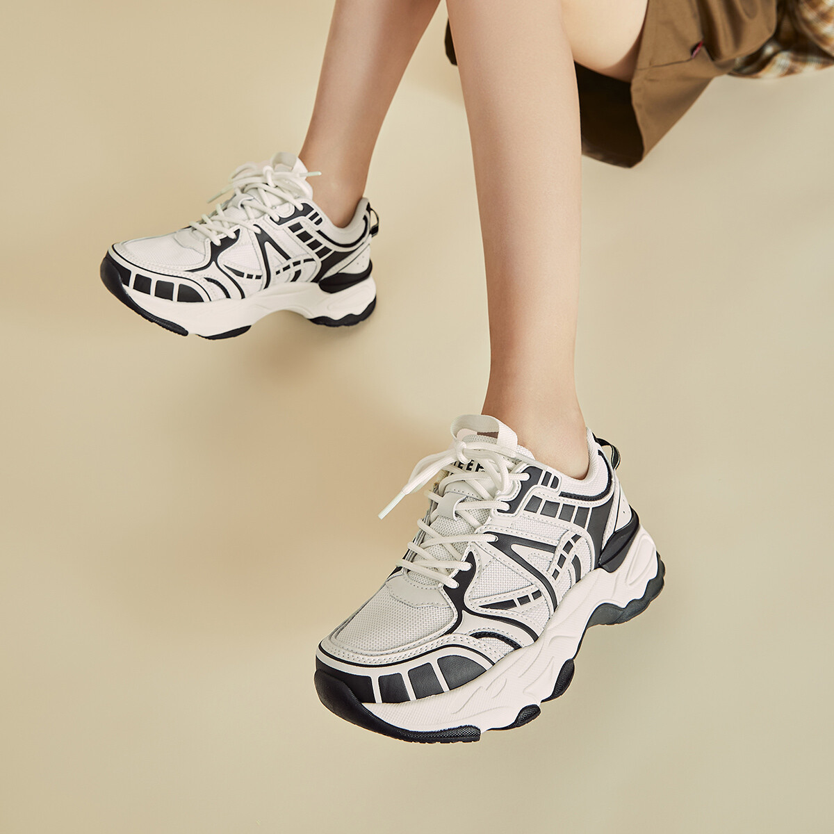 Кроссовки JEEP SPIRIT Chunky Sneakers Women's Low-top, черный/бежевый 5 281₽