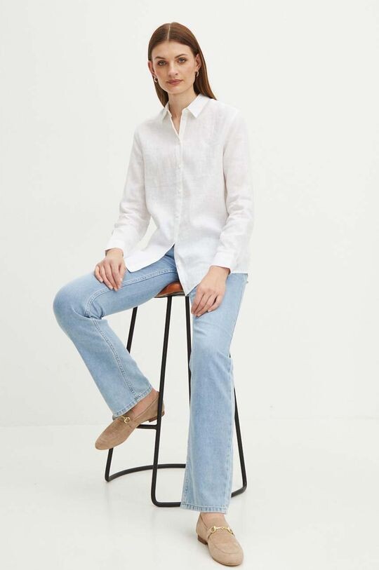 Рубашка из коллекции Medicine. Модель изготовлена ​​из льняной ткани. Есть воротник.
