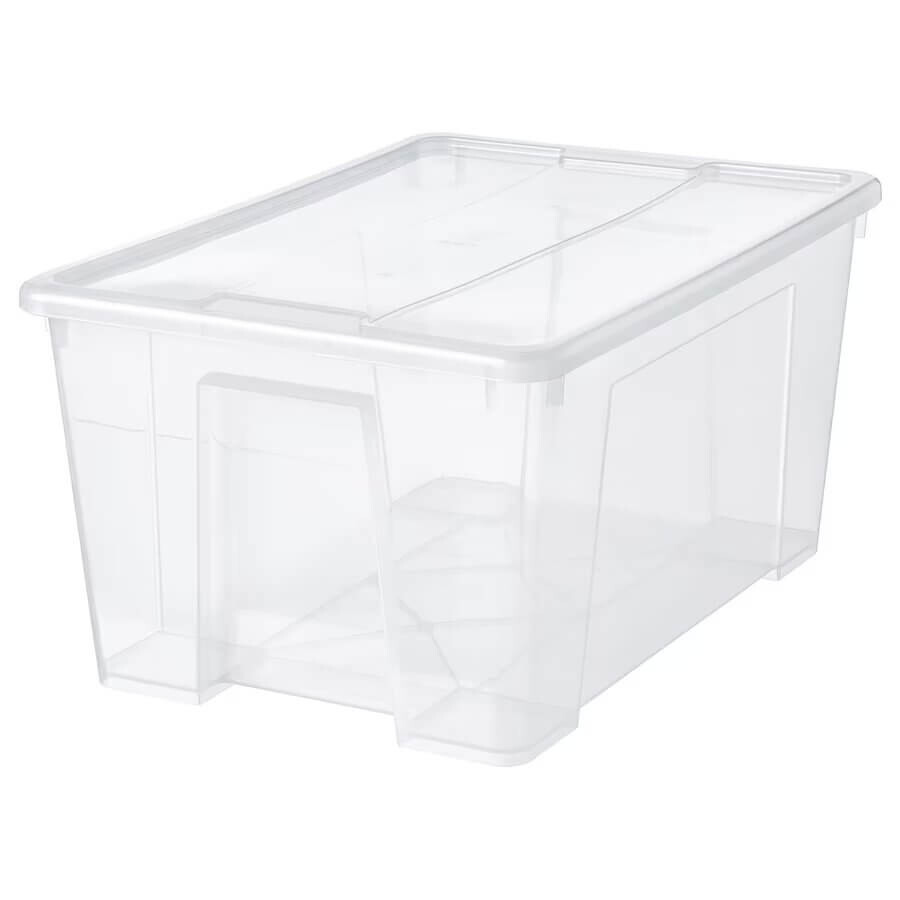 В этом контейнере среднего размера удобно хранить все что угодно — от новогодних украшений до спортивного инвентаря. Сквозь прозрачный пластик хорошо видно содержимое, поэтому вам будет легко находить нужные вещи.