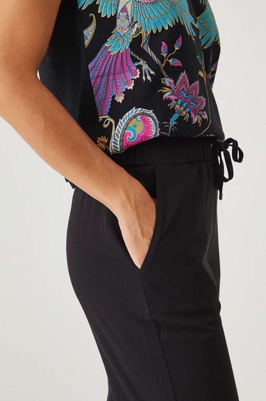 Брюки из коллекции Medicine. Модель изготовлена ​​из гладкой ткани.