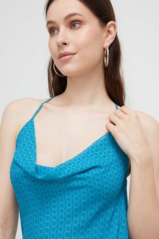 Платье из коллекции Trussardi из узорчатой ​​ткани. Благодаря содержанию полиэстера материал более устойчив к складкам.