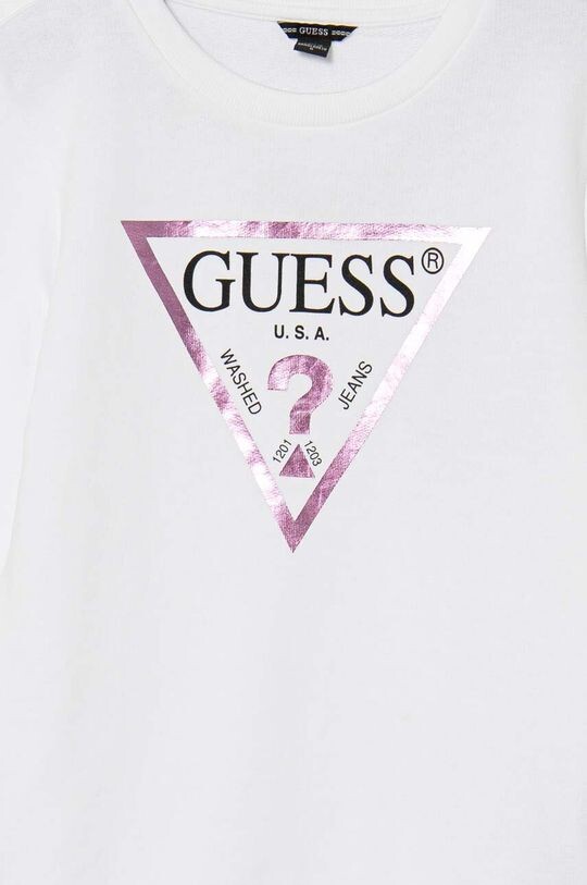 Детский свитшот из коллекции Guess из трикотажного полотна с принтом. Модель изготовлена ​​из чрезвычайно комфортного хлопкового материала.