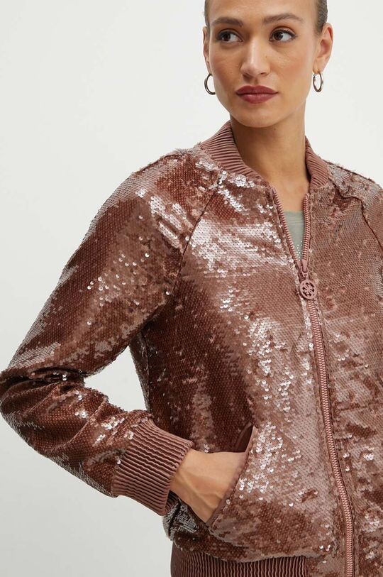 Бомбер из коллекции Guess. Неутепленная модель из ткани с пайетками. Привлекательный, блестящий материал.