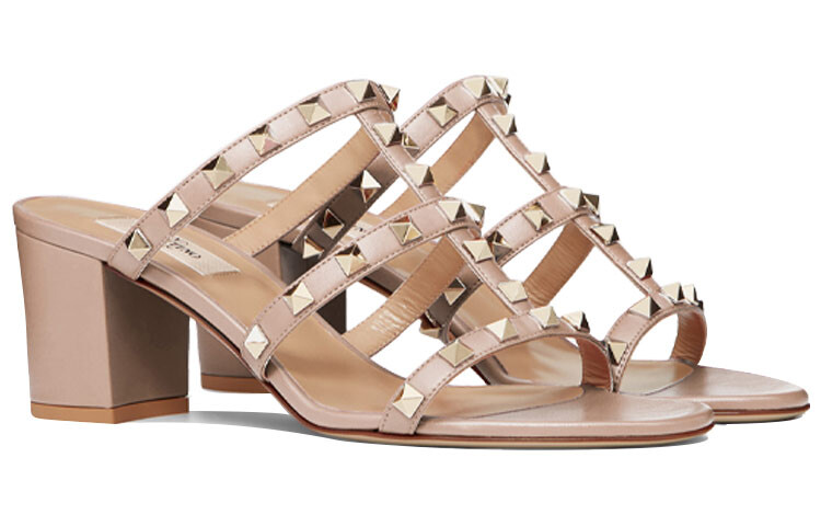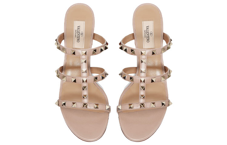 Босоножки Valentino с заклепками, нюдовый