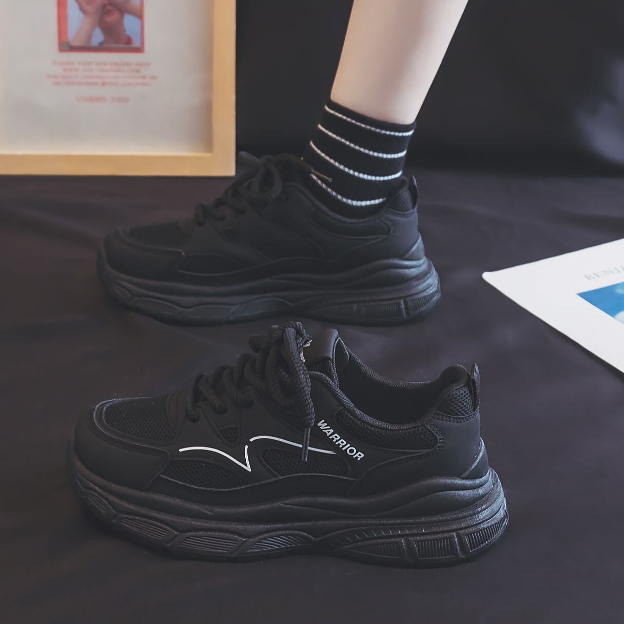 Кроссовки WARRIOR Chunky Sneakers Women's Low-top Black, черный 2 119₽