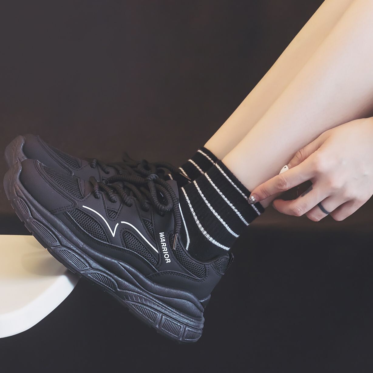 Кроссовки WARRIOR Chunky Sneakers Women's Low-top Black, черный