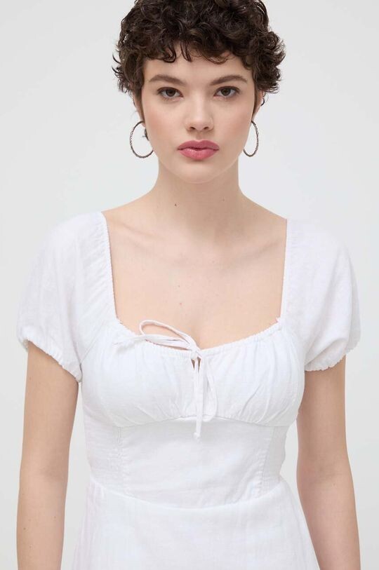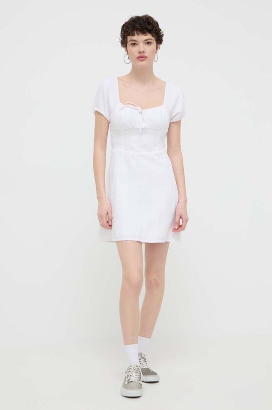 Платье из коллекции Hollister Co. Изготовлен из гладкой ткани. Модель изготовлена ​​из воздушного, дышащего материала с высоким содержанием льна.