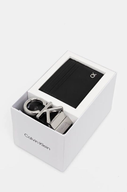 Кожаный ремень и визитница Calvin Klein, черный