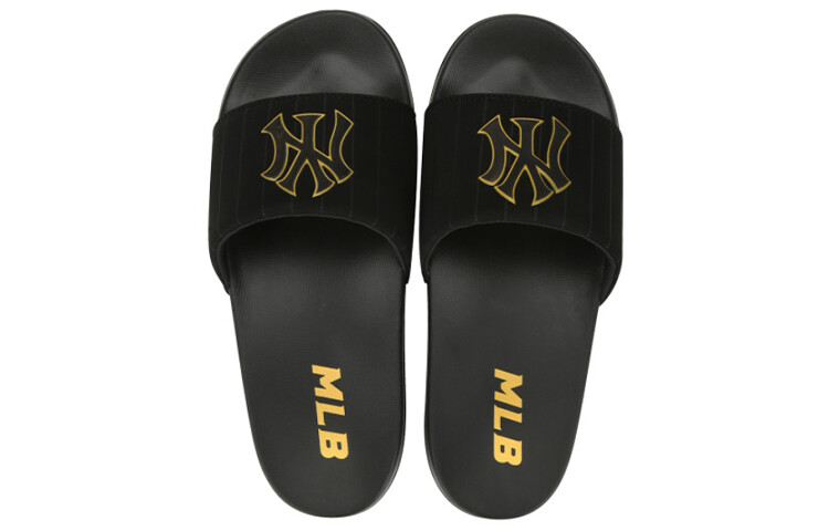 Шлепанцы унисекс черный/золотой Mlb