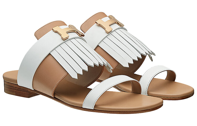Шлепанцы женские Hermes, белый/коричневый