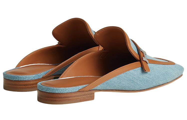Тапочки женские Hermes, голубой/коричневый