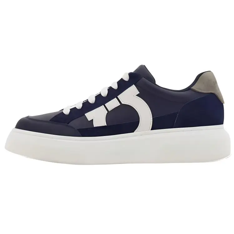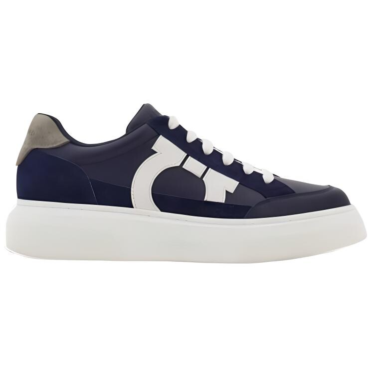 Кожаные мужские кеды Ferragamo на платформе, темно-синий