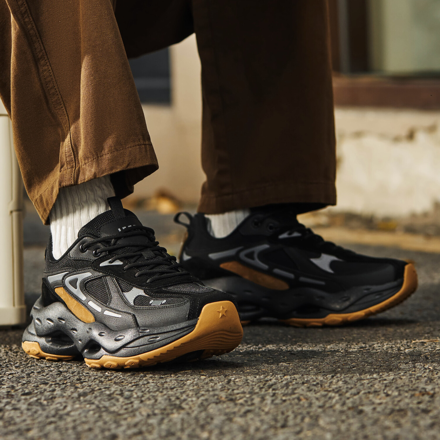 Кроссовки JEEP SPIRIT Chunky Sneakers Men Low-top Black/yellow, черный
