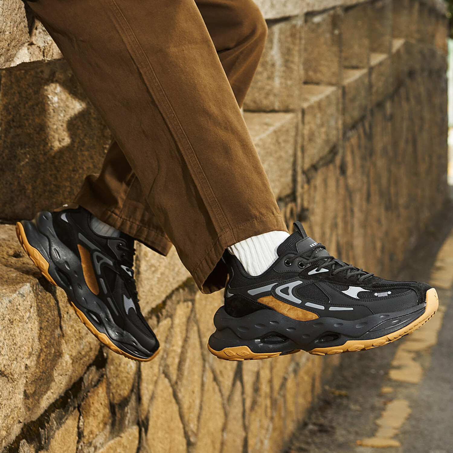 Кроссовки JEEP SPIRIT Chunky Sneakers Men Low-top Black/yellow, черный 6 919₽