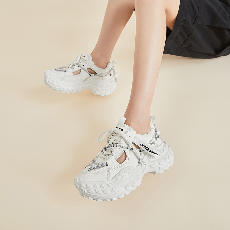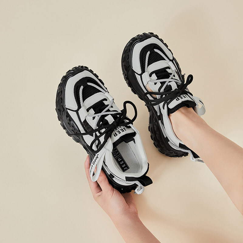 Кроссовки JEEP SPIRIT Chunky Sneakers Women's Low-top, черный/бежевый 4 522₽