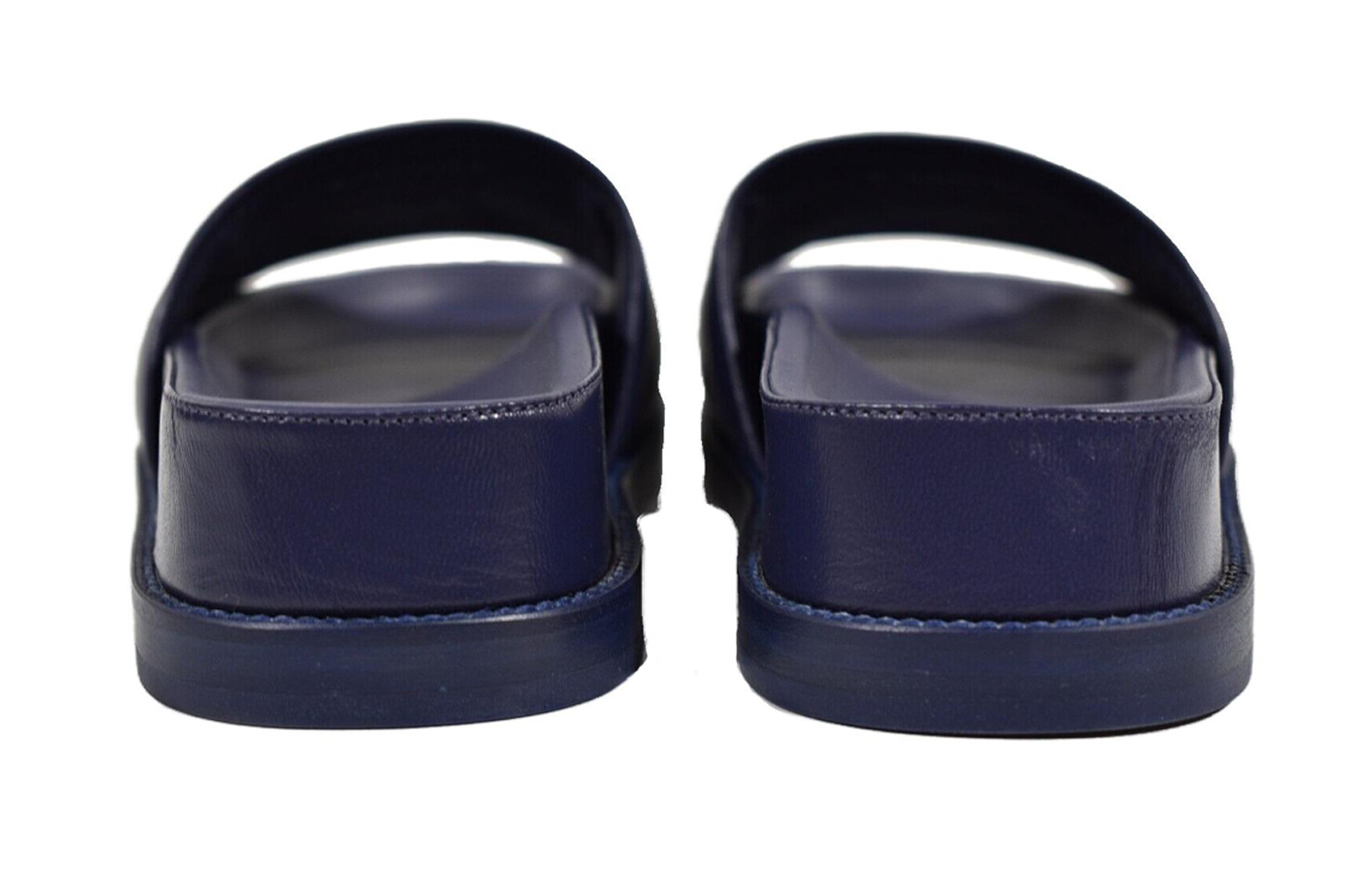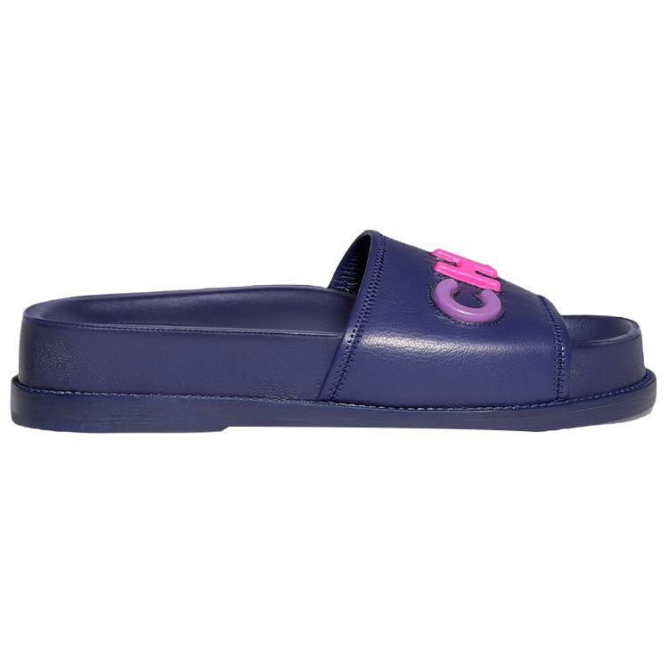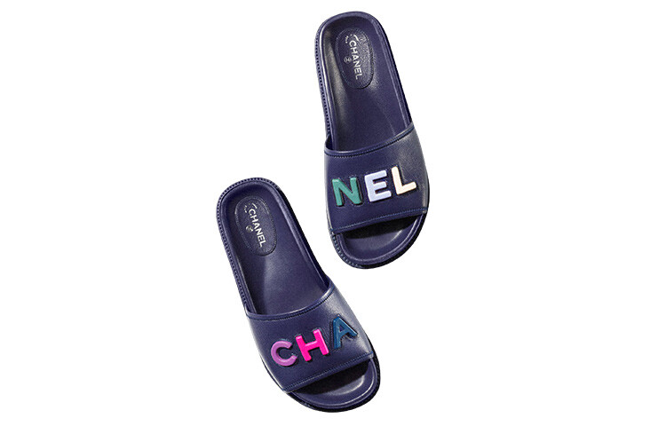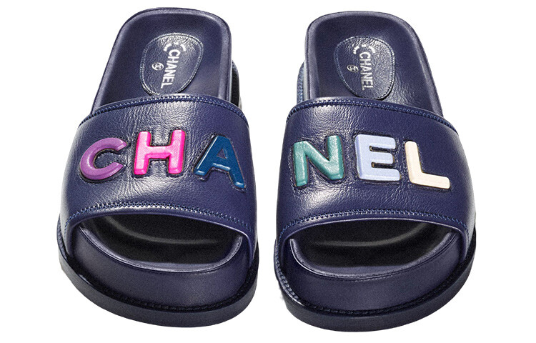 Сандалии-мюли с логотипом из темно-синей кожи Chanel