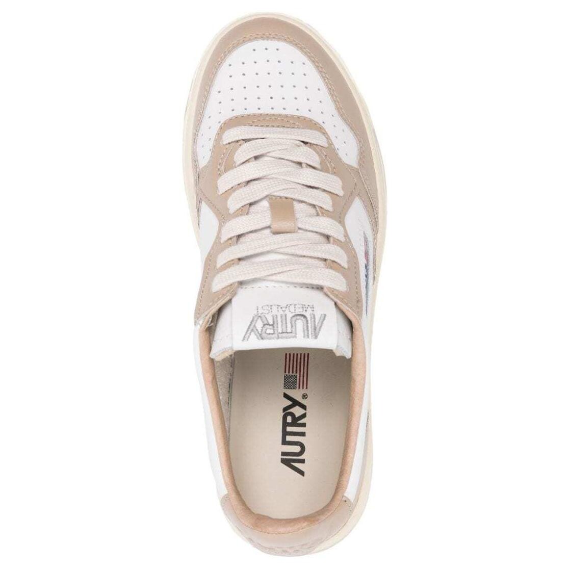 Поднимите свой стиль кроссовок с помощью этих низких кроссовок Autry из двухцветной кожи. Перфорированный носок для лучшей воздухопроницаемости, плоские хлопковые шнурки, этикетки на кожаном язычке и культовый каблук с тисненым логотипом. Мягкий воротник на щиколотке и подкладка из махровой ткани внутри обеспечивают комфорт. Эти кроссовки производства США оснащены кожаной стелькой, резиновой подошвой с логотипом и приподнятым каблуком. В комплект входит сумка для хранения обуви.
