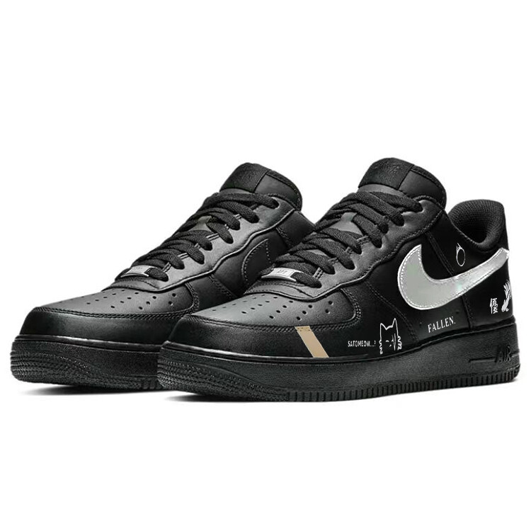 Кроссовки Nike Air Force 1 Skateboarding Shoes Men Low-top Black/White/Silver, черный
