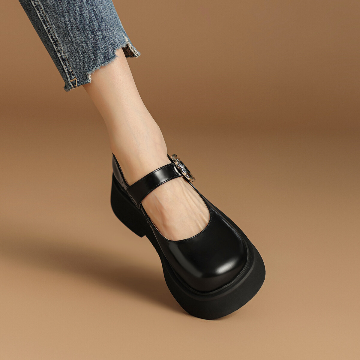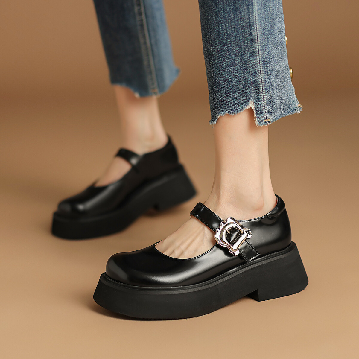 Туфли на платформе женские низкие черные Rosa Bianca