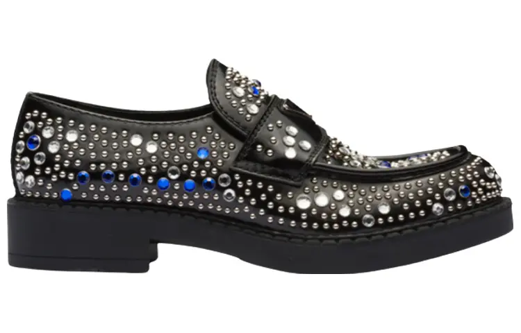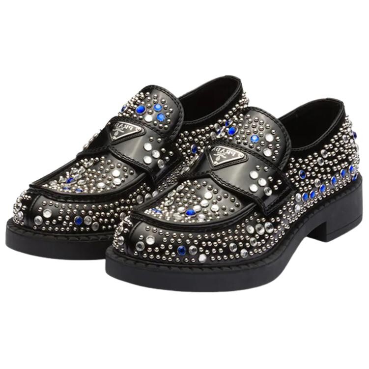 Мокасины из матовой кожи, украшенные стразами Prada