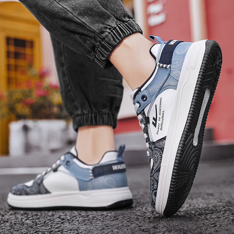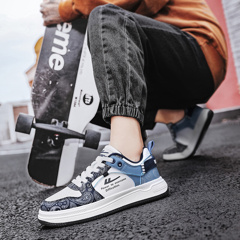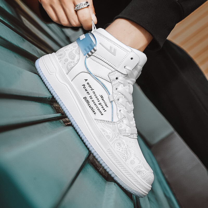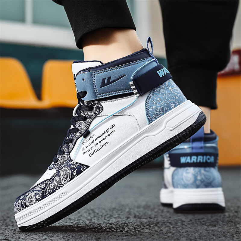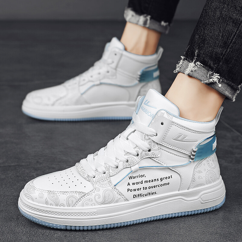 Кроссовки WARRIOR Skateboarding Shoes Men High-top, белый/голубой