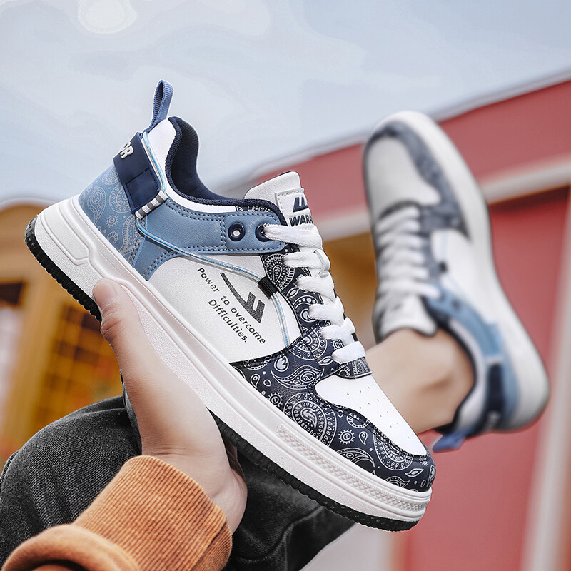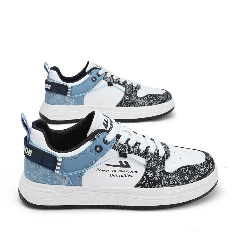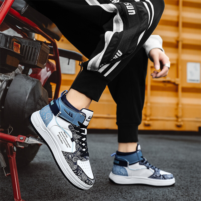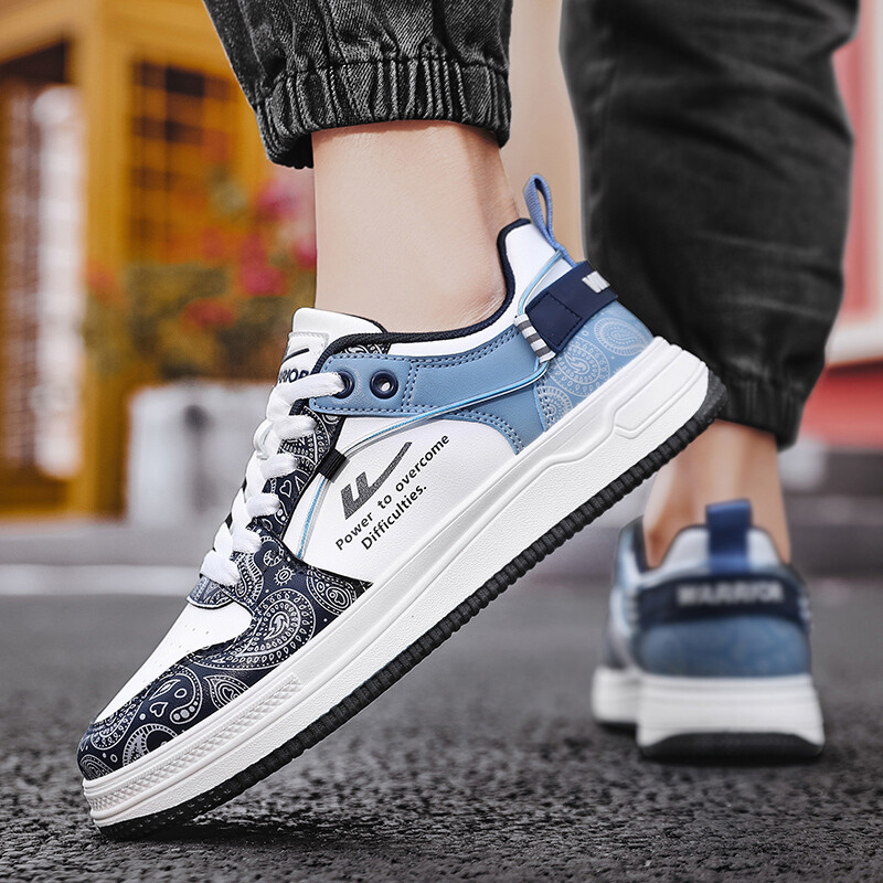Кроссовки WARRIOR Skateboarding Shoes Men High-top, белый/голубой