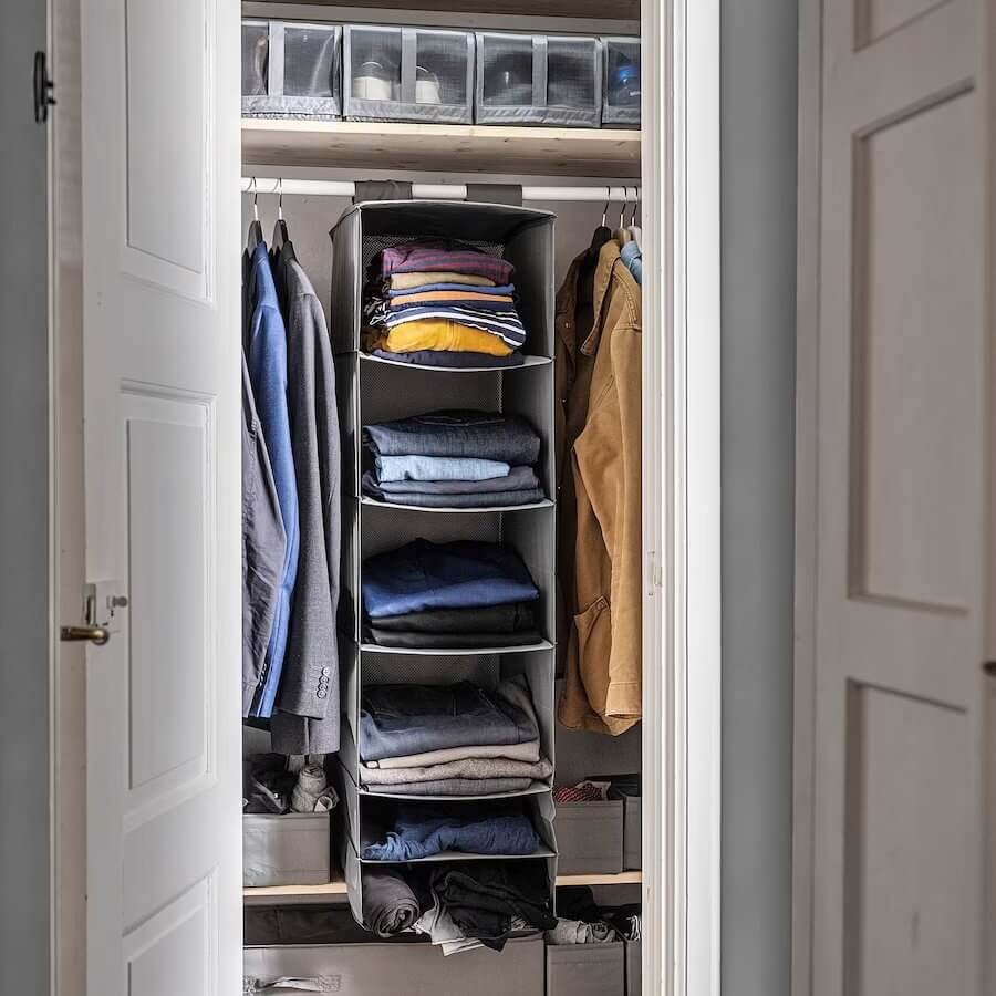 Этот модуль поможет вам создать дополнительные полки для хранения вещей. Просто повесьте его внутрь гардероба или на отдельно стоящую вешалку. Чтобы хранить одежду в идеальном порядке, используйте вместе с другими товарами серии Скубб.