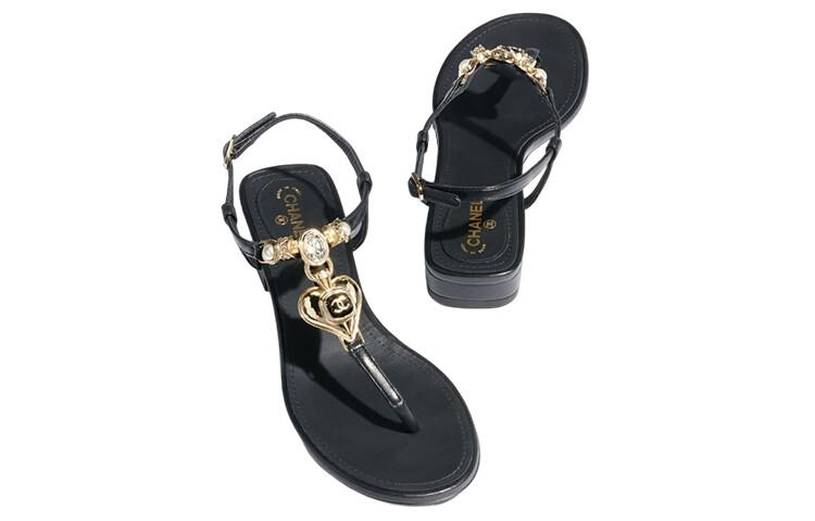 Сандалии женские Chanel, черный / золотой