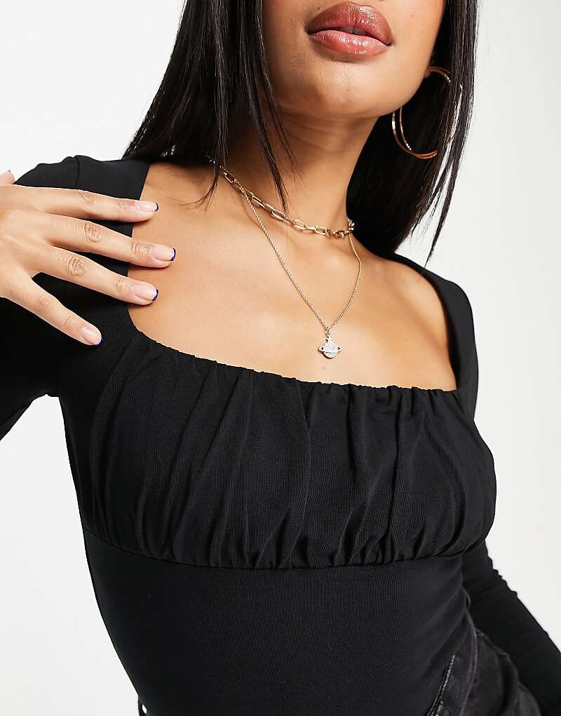 Черный топ с длинными рукавами и сборками на груди ASOS DESIGN