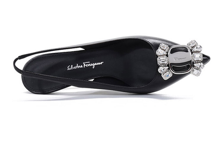 Туфли женские Ferragamo с пряжкой, черный / серебряный