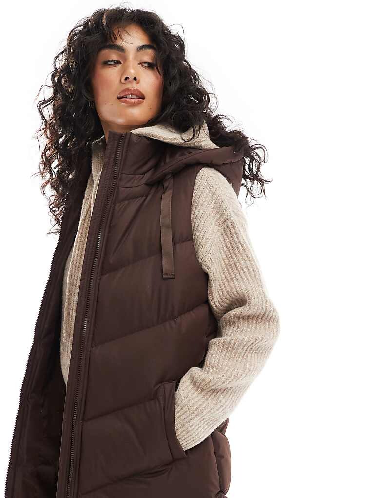 Threadbare – Коричневый утепленный удлиненный жилет с капюшоном