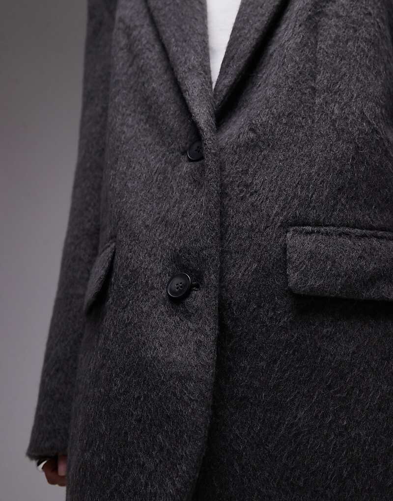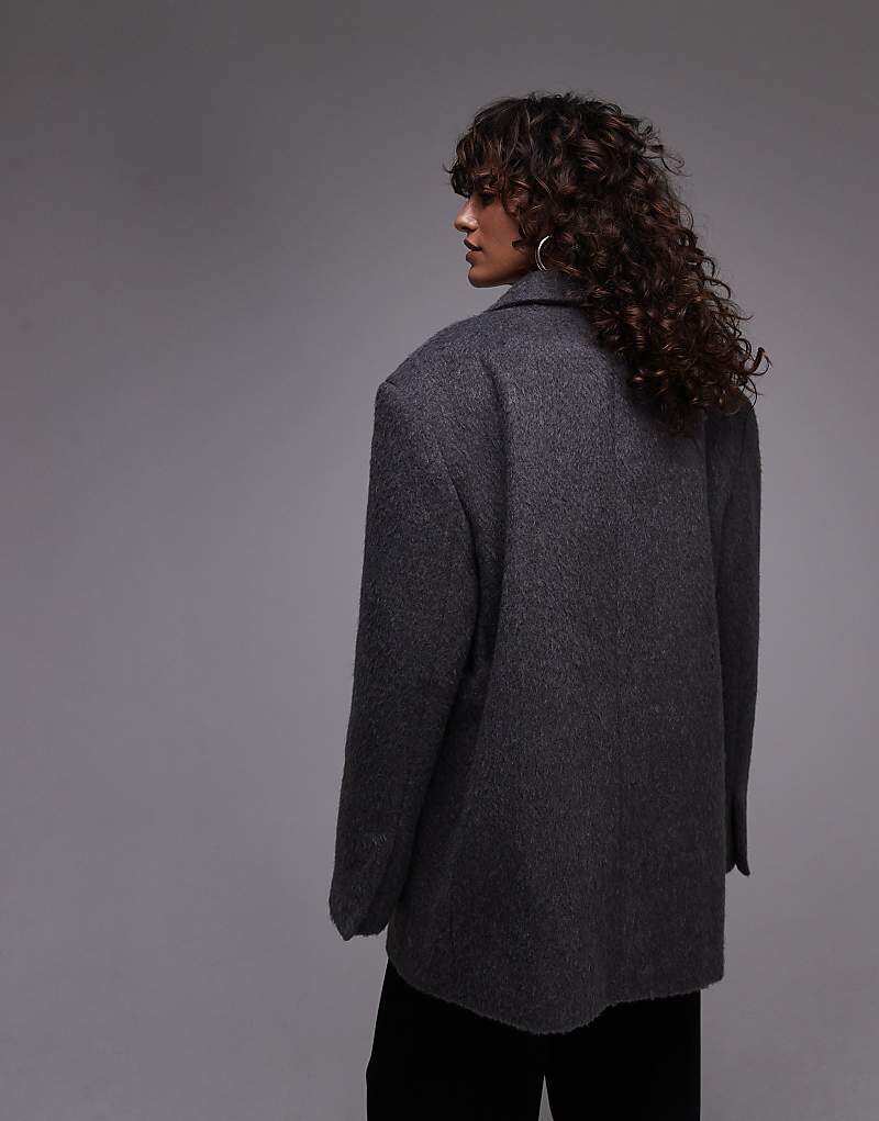 Topshop – Серое пальто из ворсованной шерсти в стиле жакета