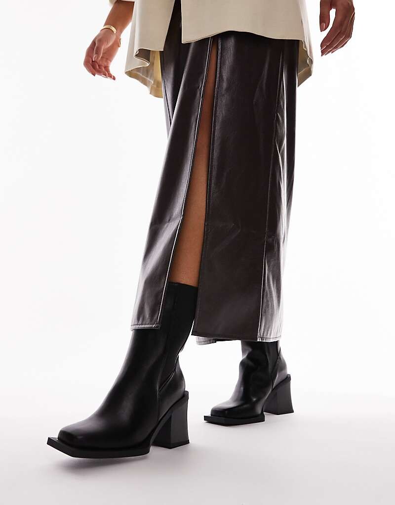 Topshop Wide Fit – Nisha – Черные ботинки челси на блочном каблуке