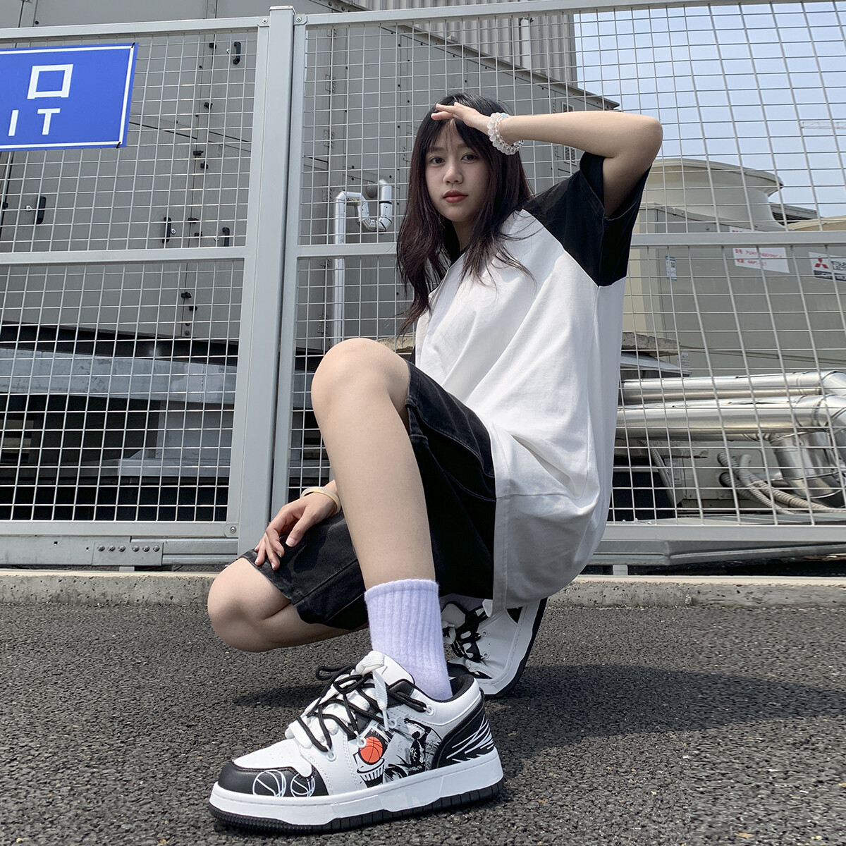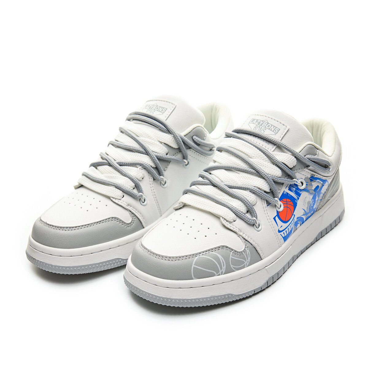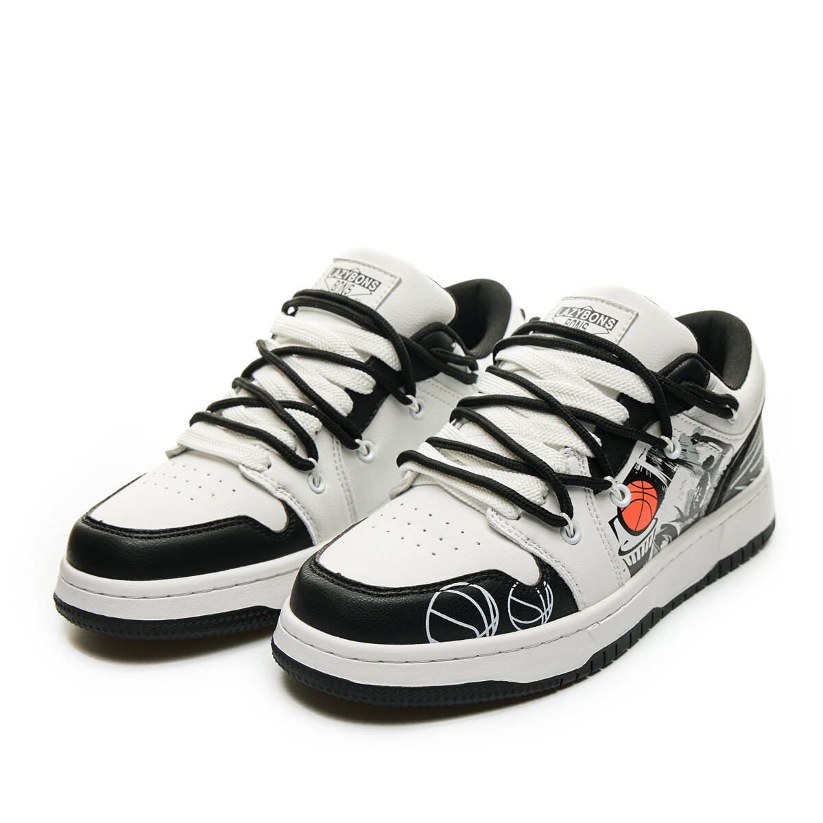 Кроссовки LAZY BONS Skateboarding Shoes Unisex Low-top, белый/черный