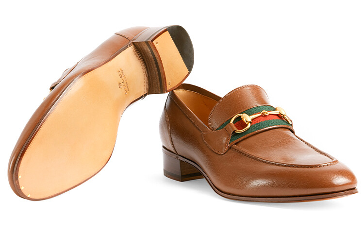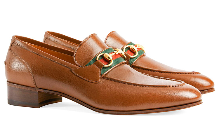 Лоферы Gucci Horsebit Web-Stripe, коричневый 48 105₽