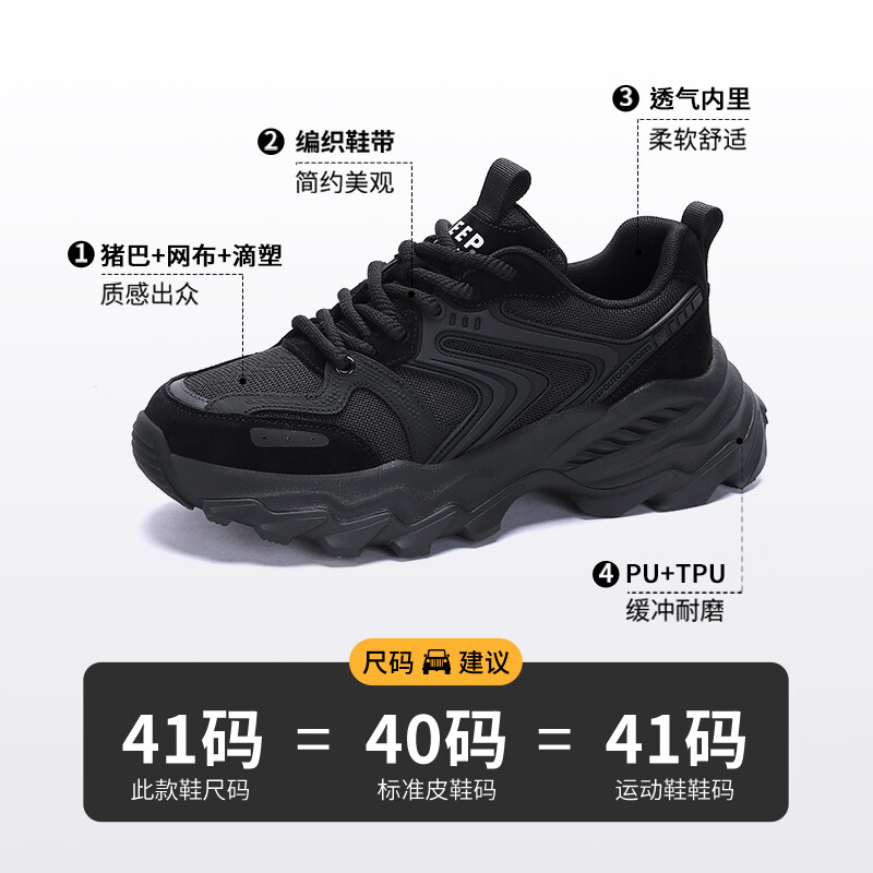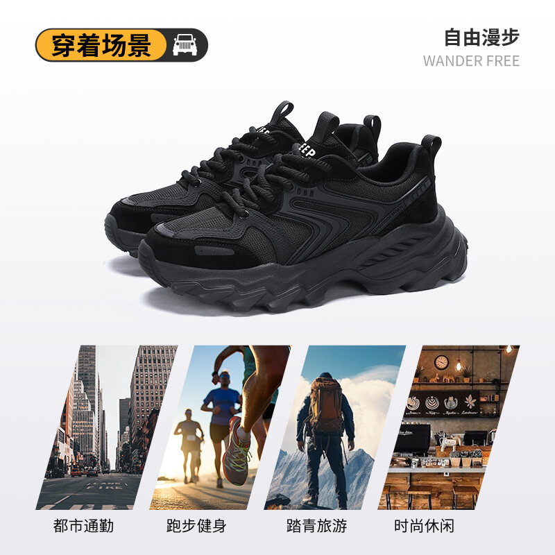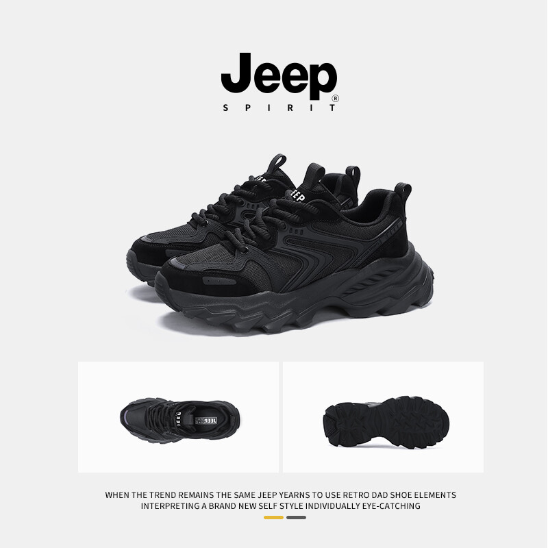 Кроссовки JEEP SPIRIT Chunky Sneakers Men Low-top Black, черный 7 307₽