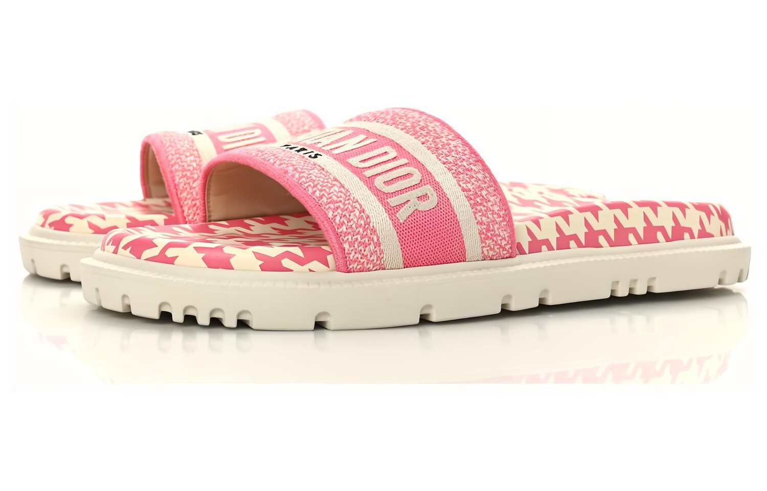 Шлепанцы женские Dior DWay Houndstooth, розовый / бежевый