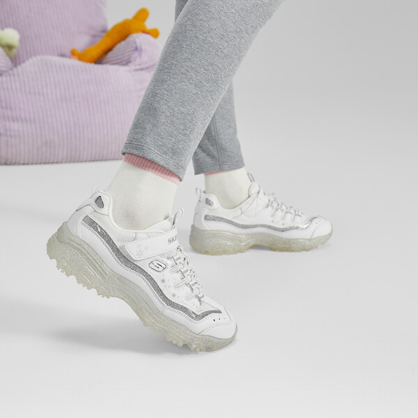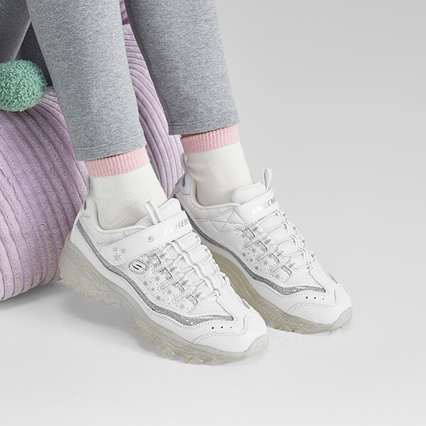 Кроссовки детские для девочек GS Low-top белые/серебристые Skechers, белый