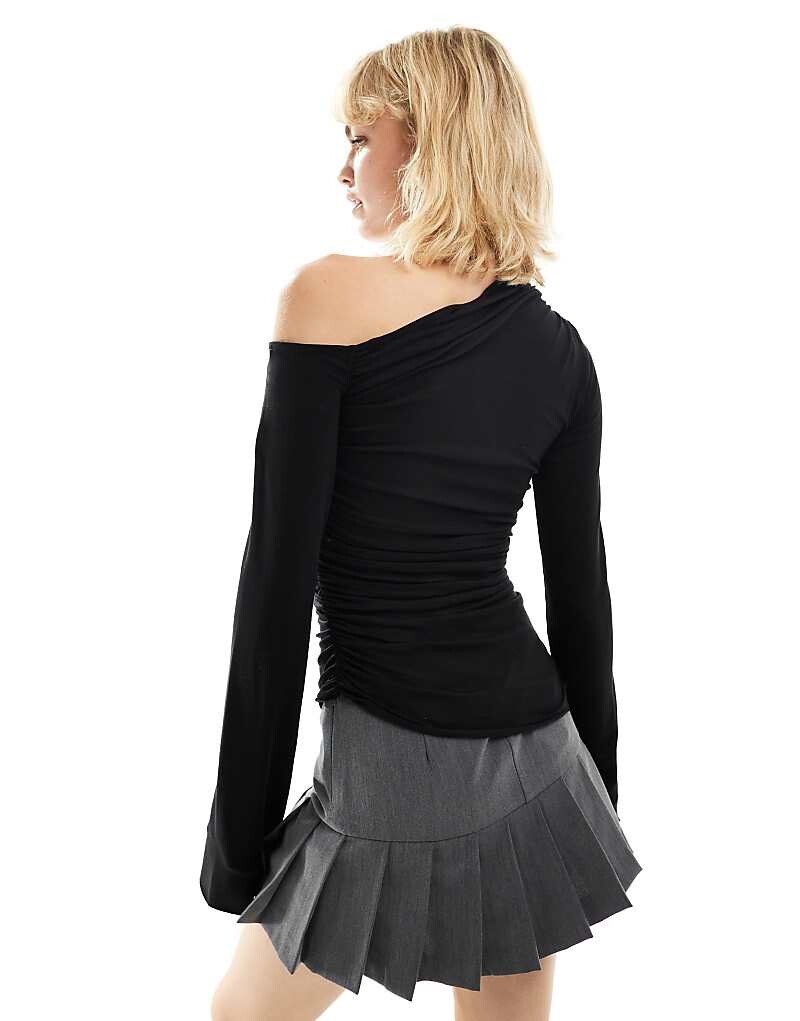 Черный асимметричный топ с длинными рукавами Weekday Erin