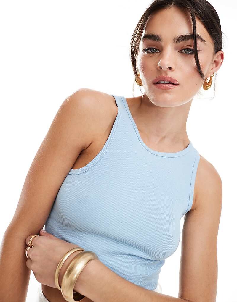JDY – Голубой короткий топ без рукавов в рубчик