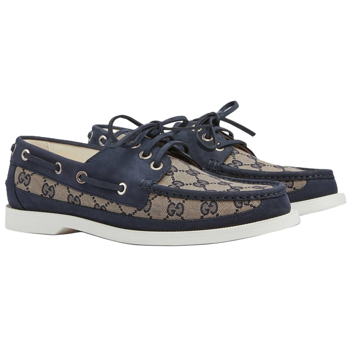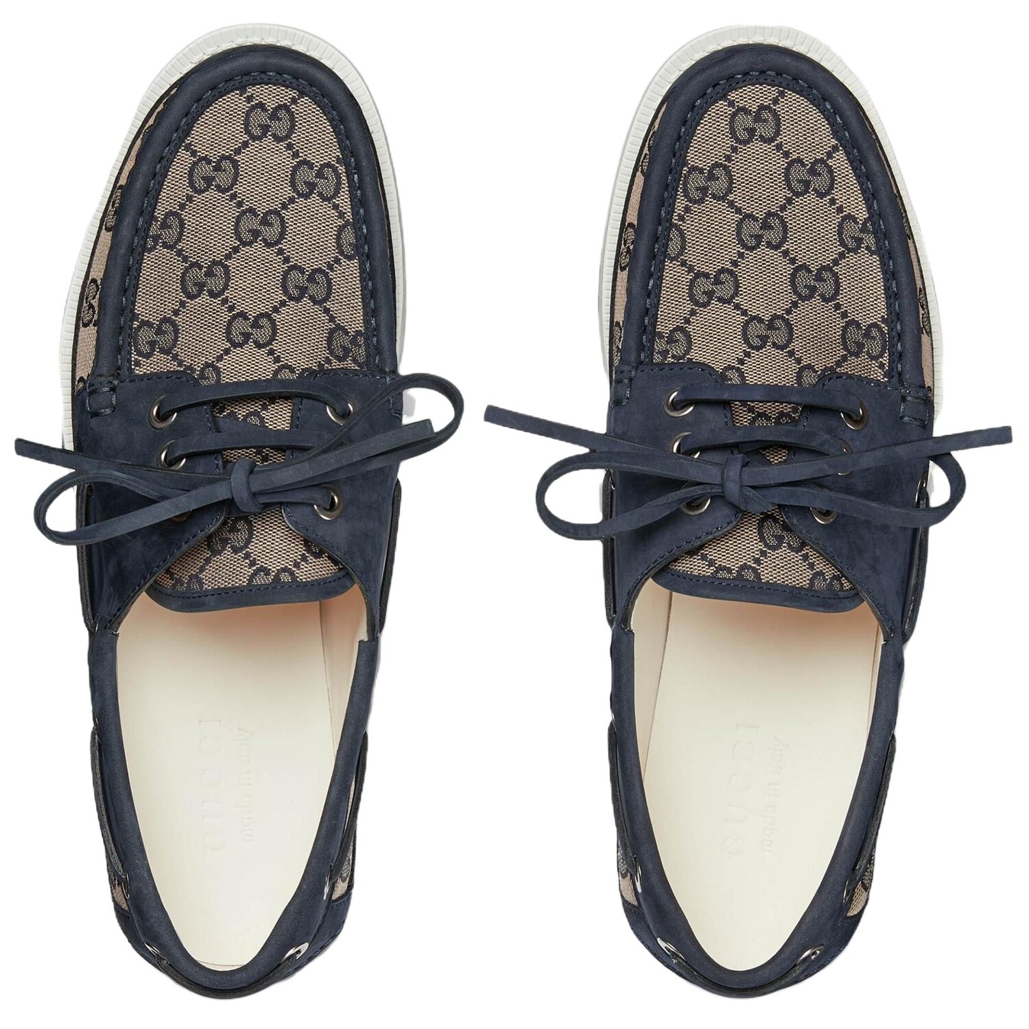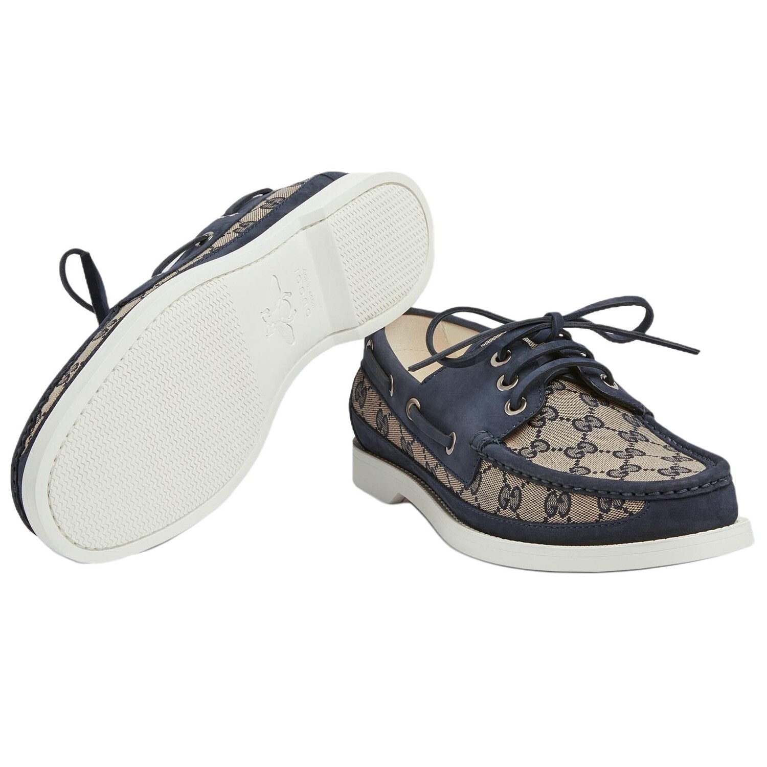 Лоферы Gucci Canvas на шнуровке, бежево-голубой