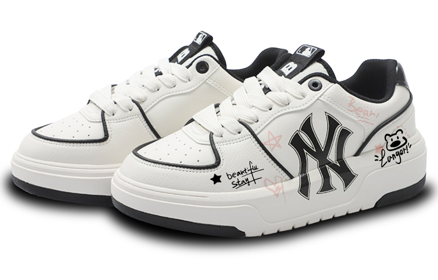 Кроссовки MLB Chunky Liner Skateboarding Shoes Unisex Low-top White/Black, белый/черный