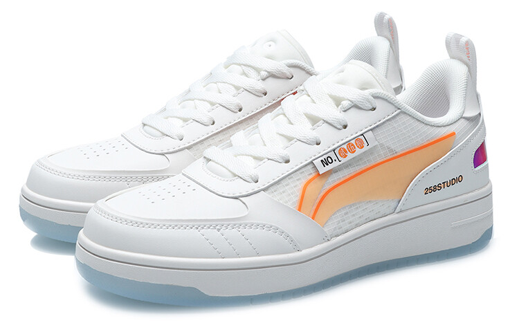NO.258 Кроссовки для скейтбординга женские низкие белые/оранжевые Lining