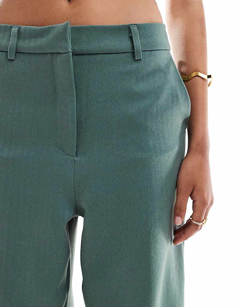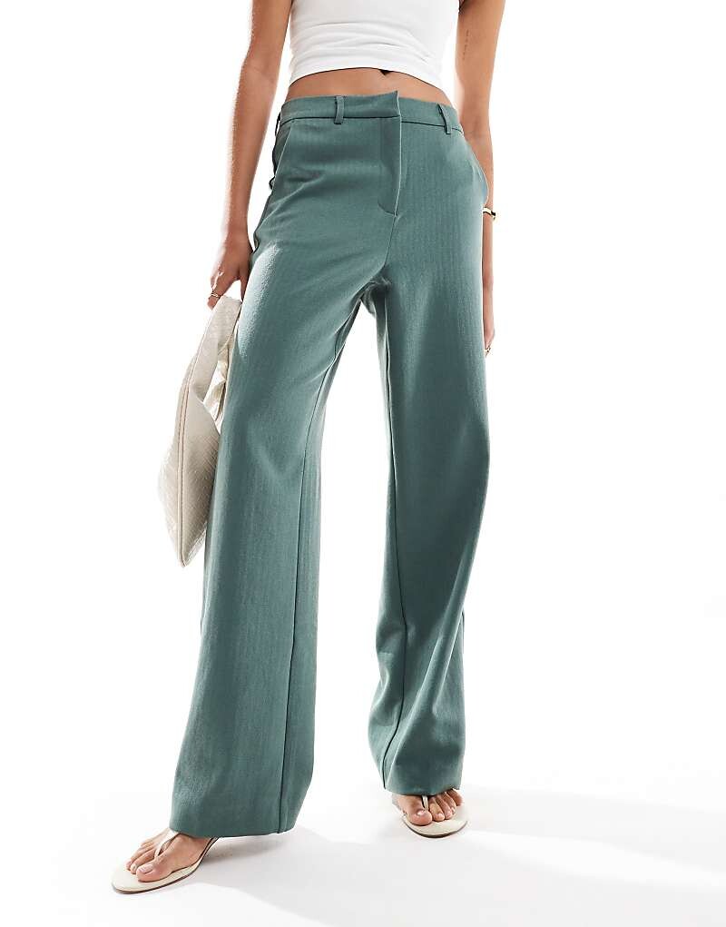 Темно-зеленые брюки строгого кроя с узором «елочка» Vero Moda