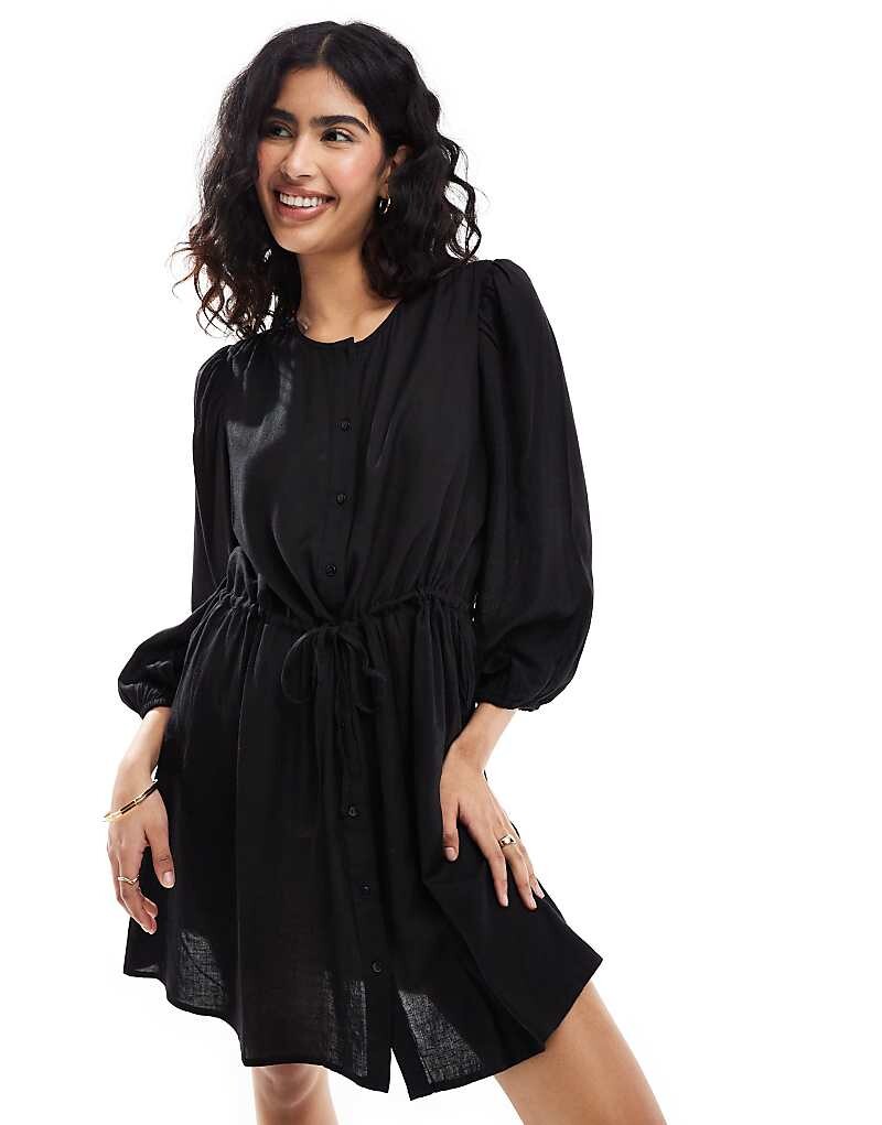 Черное льняное платье мини с завязкой на талии Vila 3 423₽