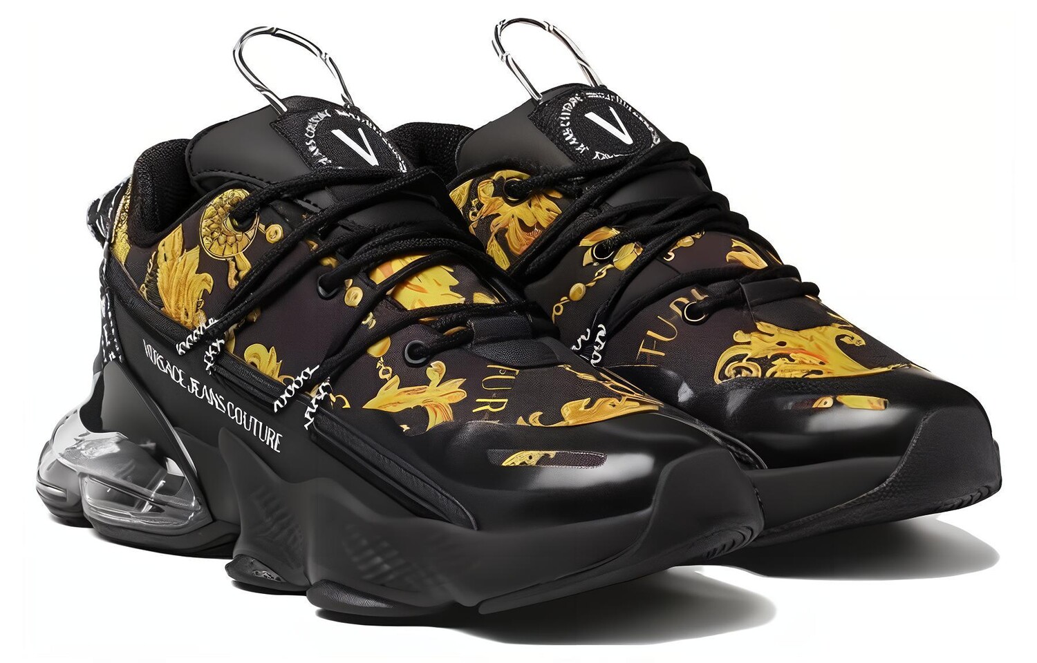 Кроссовки VERSACE JEANS Couture Chain Couture-print Panelled Sneakers, черный