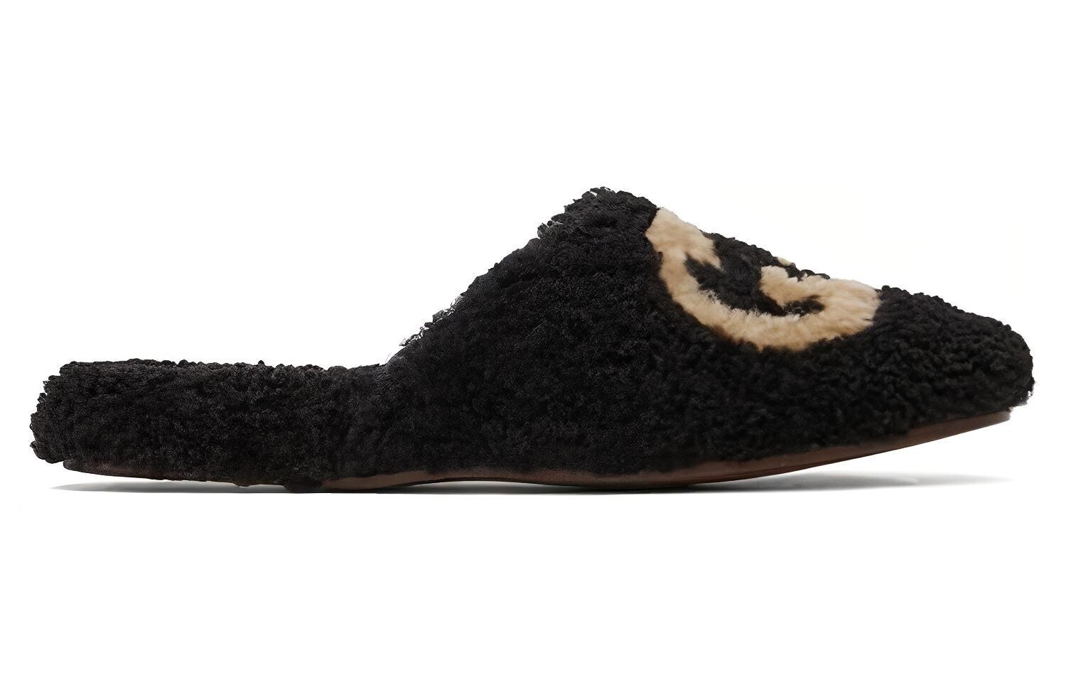 Тапочки женские Gucci Interlocking с мехом, черный / белый