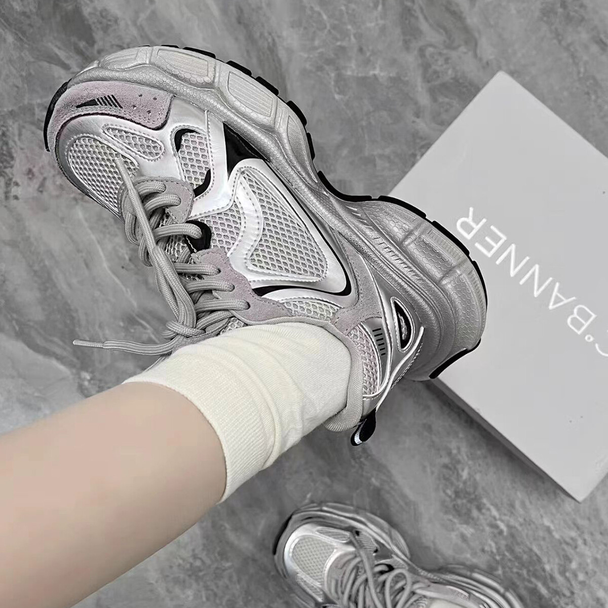 Кроссовки C°BANNER Chunky Sneakers Unisex Low-top, белый/серый